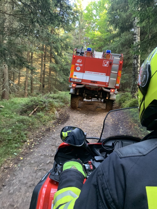 V Královéhradeckém kraji jsou místa, kam se se zásahovou technikou nemáme šanci dostat. Pak už je to jen na hasičích. To byl příklad i včerejšího požáru v lesním porostu v Broumovských stěnách. Jednotky musely táhnout vedení asi 300 metrů do ostrého stoupání skrze lesní porost, houštiny a kamení.