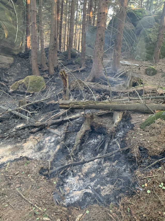 Šest hasičských jednotek bylo zalarmováno kvůli ohlášenému požáru v lesním porostu v katastru obce Božanov v lokalitě Broumovských stěn. Hořelo ve velmi těžko přístupném terénu. Hasiči se dostali se zásahovou technikou nedaleko rozcestí Machovský kříž a odtud museli táhnout vedení asi 300 metrů do ostrého stoupání skrze lesní porost, houštiny a kamení. Hořelo na ploše asi 25x30 m. Po téměř třech hodinách se podařilo jednotkám požár lokalizovat a po 20. hodině byl zásah přerušen. Na místo události vyjeli hasiči opět následující den ve čtvrtek po 6. hodině ráno, aby doutnající místa dohasili.