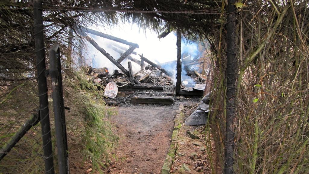 Jednotka požární ochrany dohašovala požářiště ještě během nedělního dopoledne poté, co začalo opět doutnat. Uvnitř objektu se v době požáru nacházelo množství papírů a odpadu. Příčina požáru je v šetření. Škoda, kterou oheň způsobil, byla odhadnuta asi na 10 tisíc korun.