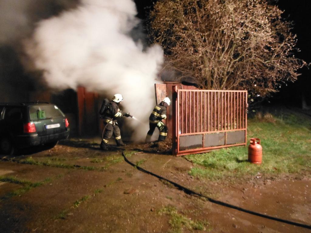 Profesionální i dobrovolní hasiči z Hořic a dále dobrovolní hasiči z Ostroměře byli povoláni k požáru plechové garáže o rozměrech asi 3,5 x 7 metrů. Požár likvidovali hasiči pomocí vysokotlakého hašení. Z okolí hořící garáže odstavily jednotky dva automobily a z vedlejší garáže vynesly tlakovou láhev. Podařilo se uchránit majetek v hodnotě asi 20 tisíc korun.