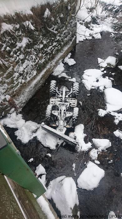 Dopravní nehoda čtyřkolky zaměstnala profesionální hasiče z Vrchlabí a dobrovolnou jednotku ze Špindlerova Mlýna. Stroj skončil po nehodě v řece. Jednotky vyprostily čtyřkolku pomocí navijáku. Nehoda se obešla bez zranění.