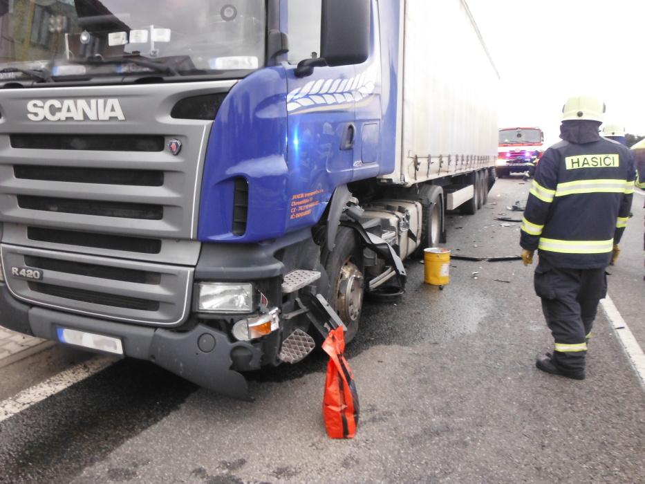 Na komunikaci pak uniklo asi 20 litrů nafty. Zbytek museli hasiči přečerpat. Na pomoc byl vyslán speciální kontejner z centrální hradecké stanice, který se využívá při úniku ropných látek. Nehoda se obešla bez zranění. Hasiči z havarovaného nákladního automobilu přečerpali asi 250 litrů nafty. Uniklou látku na komunikaci zasypali sorpčním materiálem. Jednotka poté pomohla s naložením osobního automobilu na odtahovou službu.