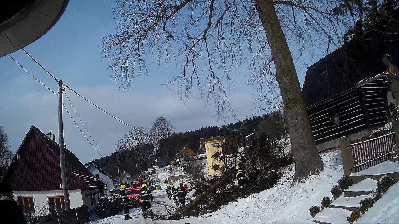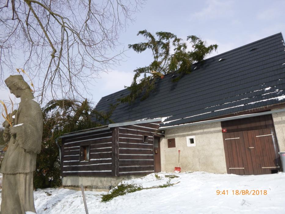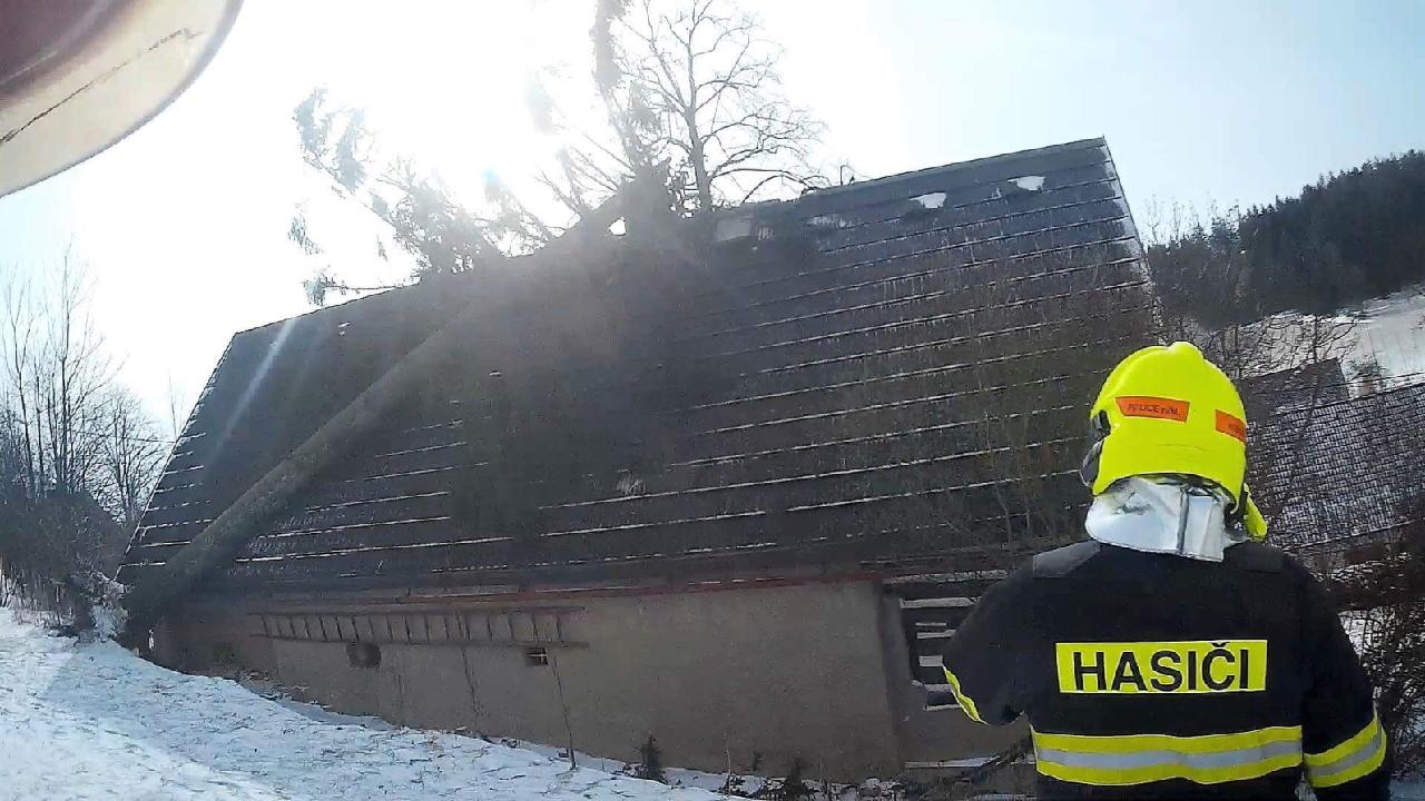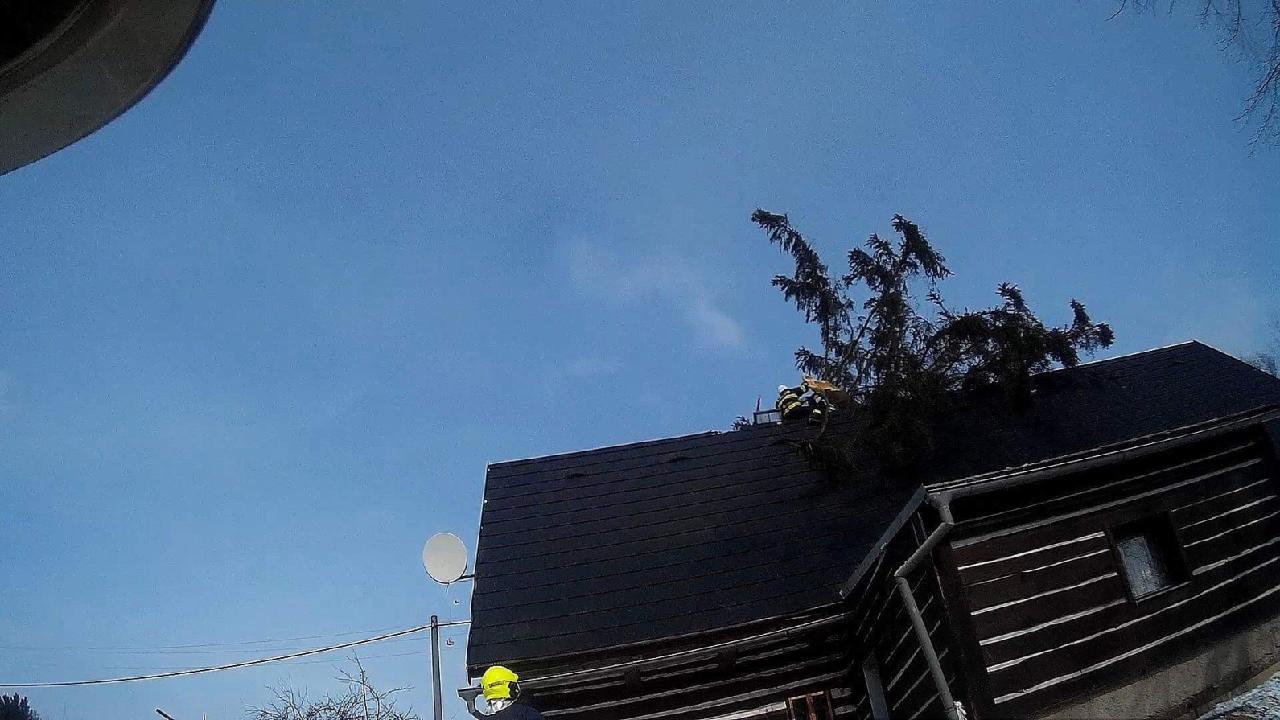 Profesionální hasiči z Rychnova nad Kněžnou pomáhali se zabezpečením střechy bytového domu v části Kunčina Ves. Kvůli silnému větru nemohla být použita výšková technika, proto provedli hasiči jen provizorní opatření.