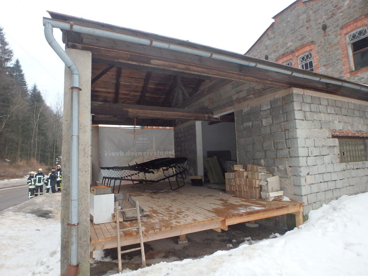 Hasiči vyjížděli do části Temný Důl k požáru ve zděném přístřešku u bývalé fabriky. Požár byl uhašen místními občany před příjezdem jednotek. Poškodil část trampolíny, která byla v přístřešku umístěna. Na místě zasahovali profesionální hasiči z Trutnova a dobrovolná jednotka z Horního Maršova.