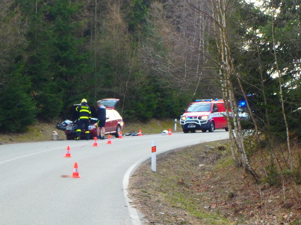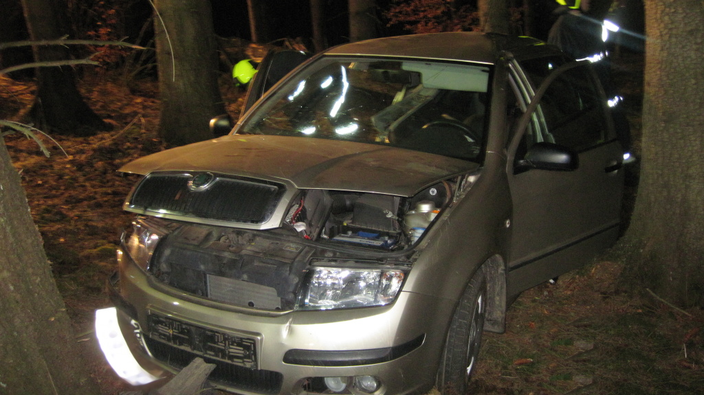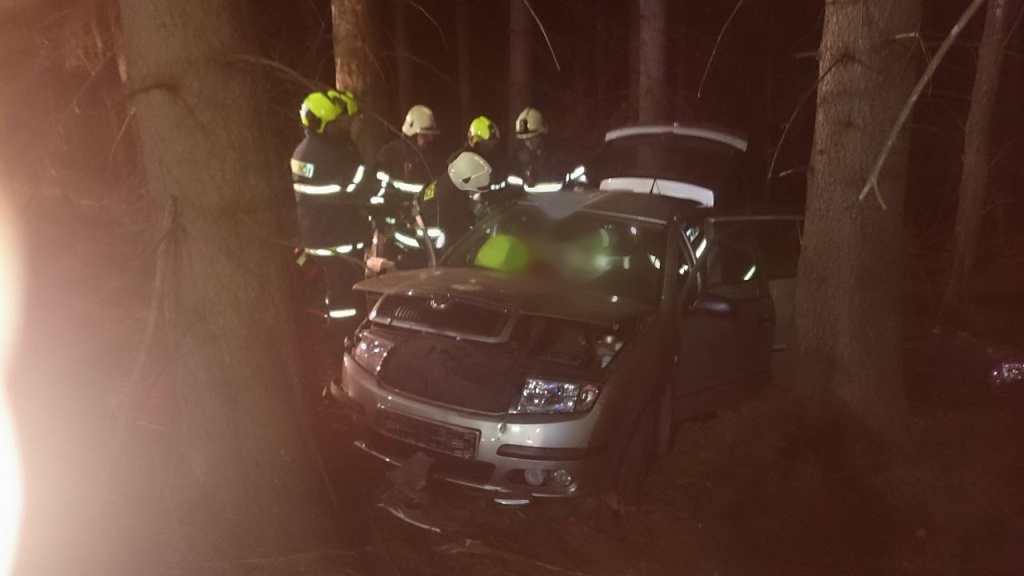 Profesionální hasiči z Dobrušky a dobrovolní hasiči z Olešnice v Orlických horách spěchali k dopravní nehodě osobního automobilu v části Končiny. Vozidlo vyjelo ze silnice a skončilo mezi stromy. Dvě osoby museli hasiči z vozu vyprošťovat. Oba zranění pak skončili v péči záchranářů. Silnice byla v době zásahu neprůjezdná. Jednotky poté pomohly s nasvícením místa události pro policii.