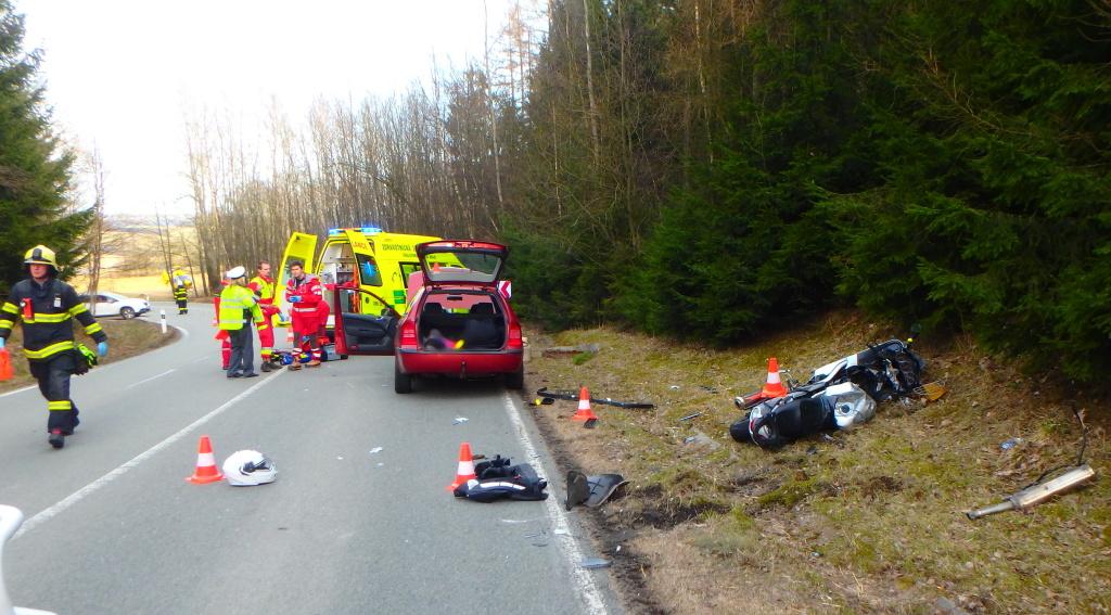 V části Dlouhá Ves zasahovali profesionální hasiči z Rychnova nad Kněžnou u dopravní nehody osobního vozidla a motocyklu. Jedna osoba byla během nehody zraněna, na místě zasahoval také vrtulník letecké záchranné služby. Komunikace byla v místě dopravní nehody uzavřena. Při střetu došlo k úniku provozních kapalin, které hasiči zasypali sorbentem. Dopravní prostředky pak zajistila jednotka proti vzniku požáru.