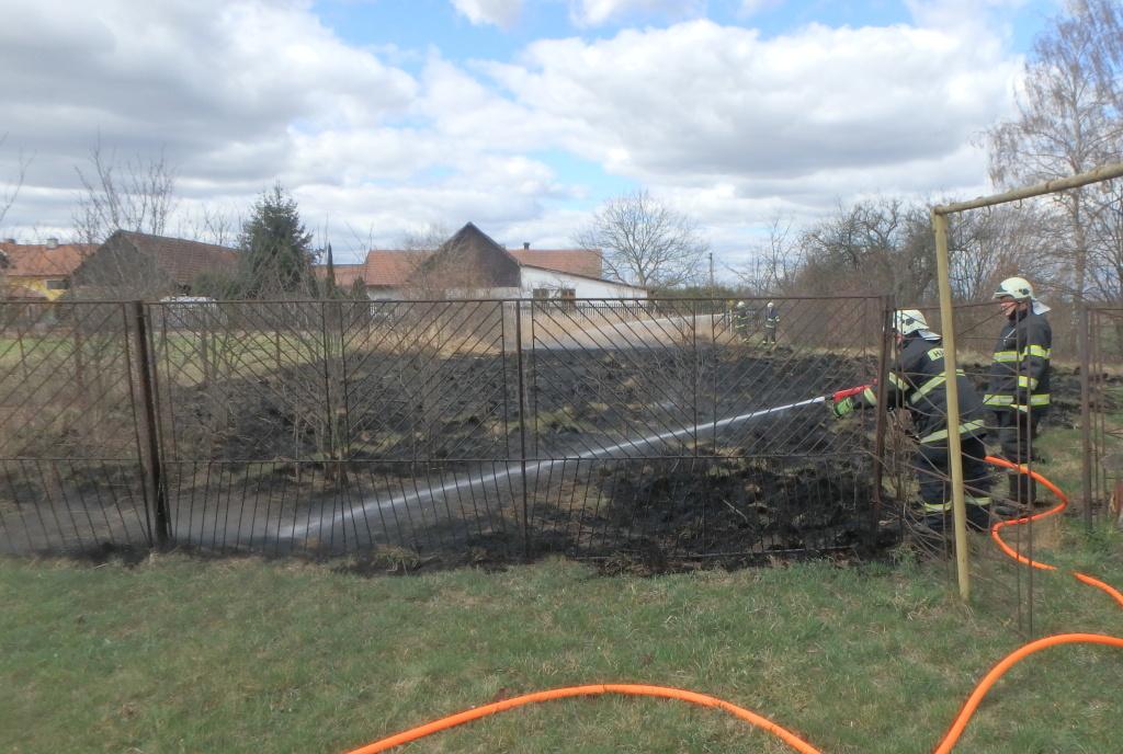 V zahradě došlo k zahoření travního porostu na ploše asi 20x20 metrů. Majitel se snažil udusat požár pomocí lopaty. Na ploše však bylo více ohnisek, jednotky vše uhasily. Na místě zasahovali profesionální hasiči z Nového Bydžova a dobrovolné jednotky z Chlumce nad Cidlinou a Nového Města nad Cidlinou.