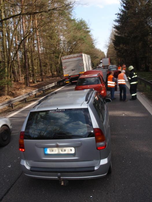 Dopravní nehoda čtyř osobních vozidel se stala v části Nový Hradec Králové na silnici I/35. Na místo mířila jednotka profesionálních hasičů z centrální stanice. Jednu osobu si převzali do péče záchranáři. Z havarovaných vozidel unikaly provozní kapaliny, které hasiči zasypali sorpčním materiálem.