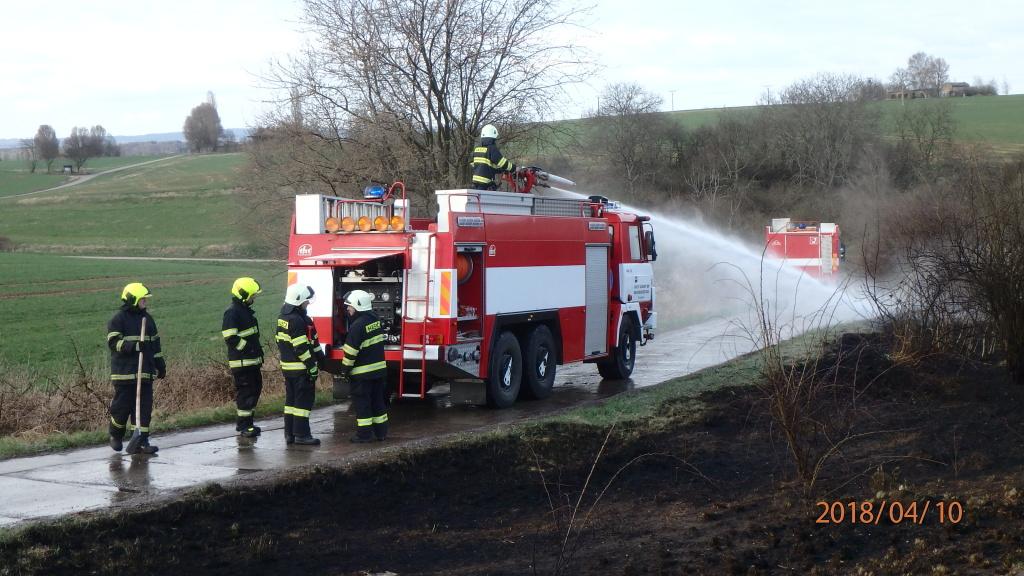 Profesionální hasiči z Jaroměře zasahovali u požáru travního porostu na ploše asi 50x50 metrů. Požár nezpůsobil žádnou škodu.