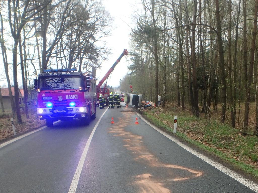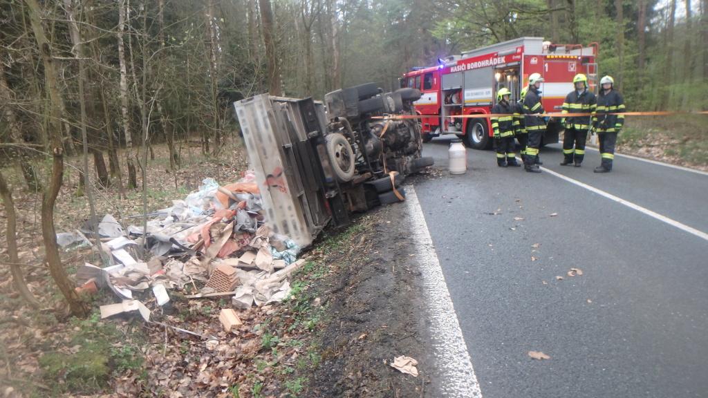 Opět v Borohrádku, ale tentokrát u dopravní nehody zasahovali profesionální hasiči z Rychnova nad Kněžnou a Holic a dobrovolná jednotka z Borohrádku. V ulici Jiřího z Poděbrad směrem na Veliny havaroval menší nákladní automobil, který skončil převrácený na bok mimo vozovku v příkopu. Hasiči provedli na vozidle protipožární opatření a jímali do nádob unikající provozní náplně. Z Rychnova nad Kněžnou mířil na místo nehody vyprošťovací automobil. S jeho pomocí se podařilo vozidlo vyprostit a postavit zpět na kola. Hasiči poté pomohli i s naložením na odtah.