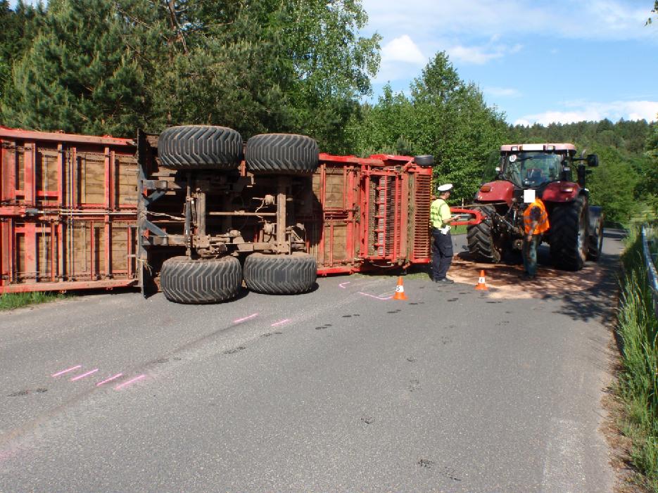 Jičínští a novopačtí profesionální hasiči zasahovali dopoledne u dopravní nehody traktoru. Řidič převrátil přívěs a zablokoval vozovku. Došlo k úniku oleje a poničení svodidel. Informována byla Správa a údržba silnic. Provoz na silnici I/16 byl dočasně zastaven, poté byla komunikace zprůjezdněna jedním pruhem. Uklizena a plně zprůjezdněna byla vozovka až po 13. h.