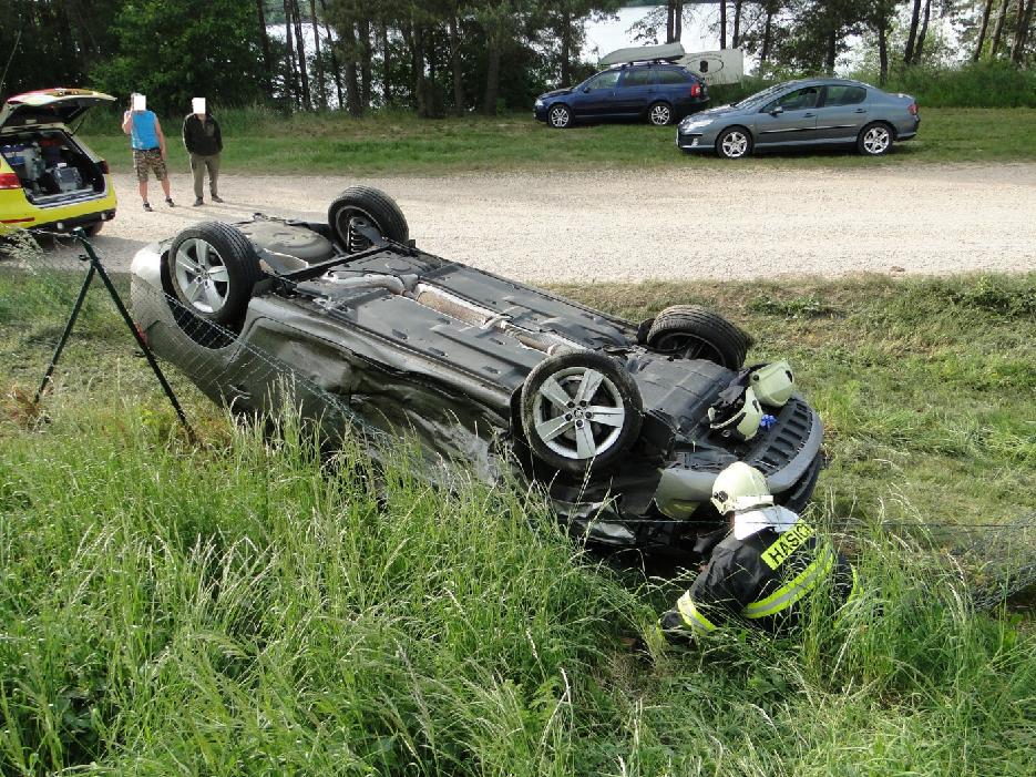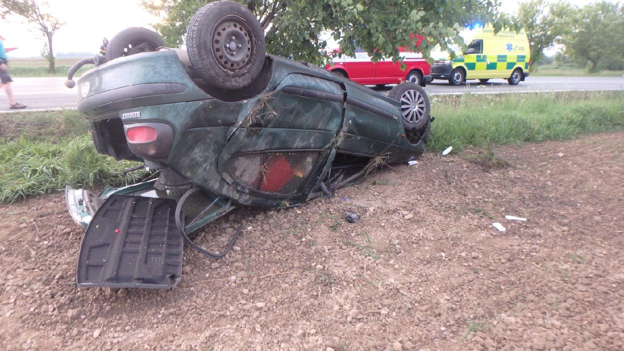 Profesionální hasiči z královéhradecké stanice Pražská a dobrovolní hasiči z Nechanic zasahovali odpoledne u dopravní nehody dvou osobních automobilů, která se stala na silnici I/11 u Roudnice. Jedno z vozidel skončilo mimo vozovku převrácené na střeše. Hasiči poskytli dvěma osobám první pomoc. Poté je předaly do péče zdravotnické záchranné služby. Uniklé provozní kapaliny zasypali hasiči sorbentem. Jednotky vozidla odklidily a zprůjezdnily komunikaci.