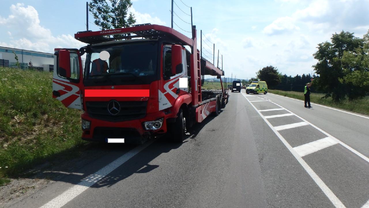 Profesionální hasiči z Hořic zasahovali kolem poledne u nehody osobního vozidla a nákladního, která se stala na silnici I/35 mezi Ostroměří a Konecchlumím. Střet se obešel bez zranění osob. Komunikace byla blokována v obou směrech a v místě se tvořily kolony. Hasiči pomohli na vůz nasadit kola, která skončila v poli.