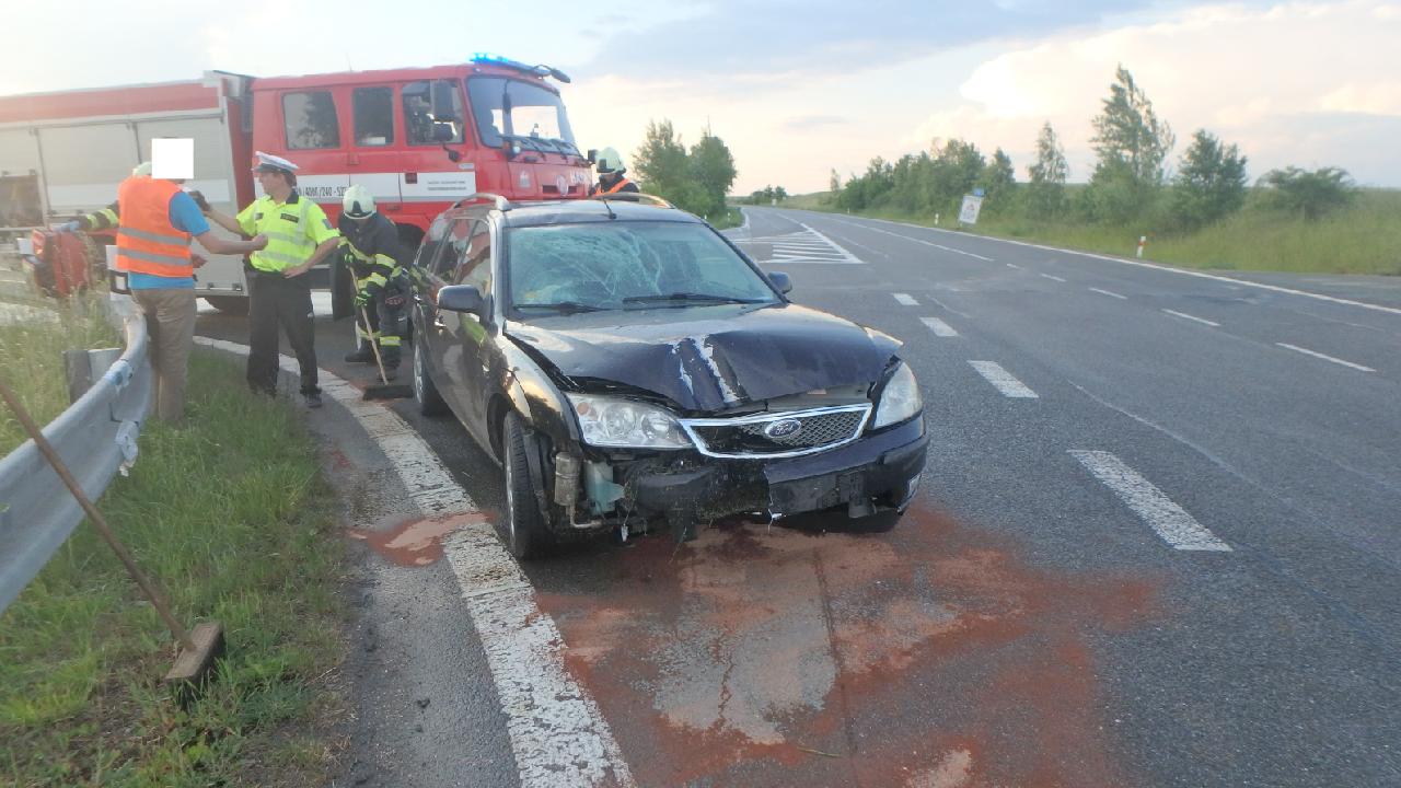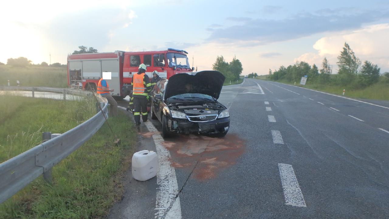 Profesionální hasiči z Nového Bydžova a dobrovolní hasiči z Chlumce nad Cidlinou byli večer přivoláni k havárii osobního vozidla, ke které došlo u výjezdu z dálnici D11 u Olešnice. Hasiči vůz odstavili mimo vozovku a uklidili uniklé provozní kapaliny. Řidič byl na místě ošetřen zdravotnickou záchrannou službou.