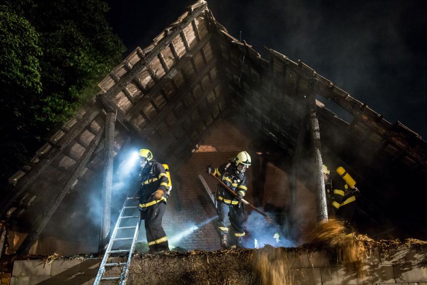 Požár balíků sena likvidovali v části Újezd profesionální hasiči z centrální hradecké stanice a dobrovolná jednotka z Černilova. Požár byl velmi brzy lokalizován. Událost nezpůsobila žádnou škodu.