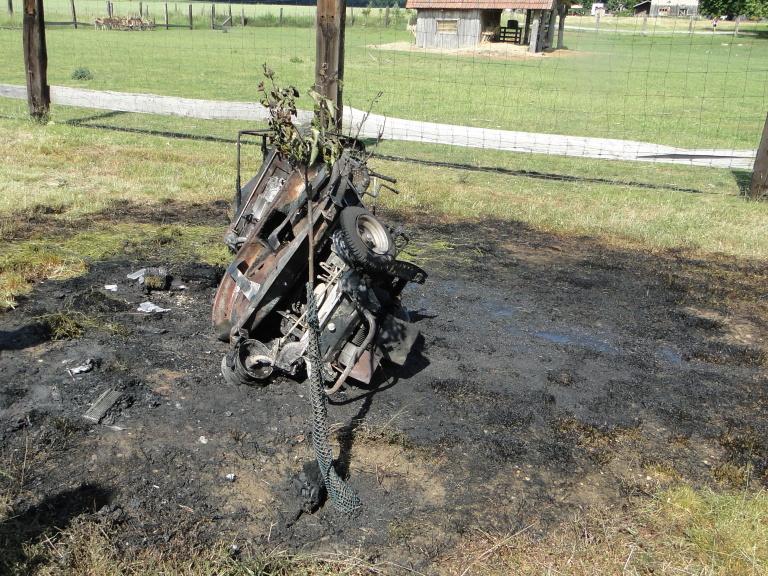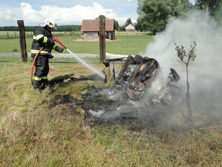 V odpoledních hodinách zasahovali profesionální hasiči ze stanice Hradec Králové – Pražská a dobrovolná jednotka z Nechanic v Radíkovicích u požáru zahradního traktůrku. Požár zahradní traktor zcela zničil. Škoda byla odhadnuta na 10 tisíc korun.