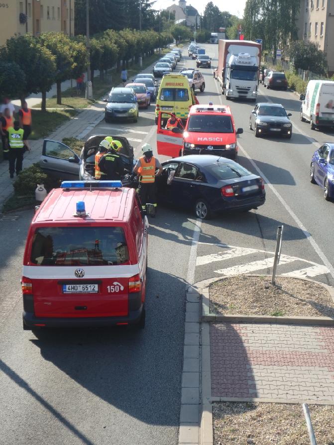 V ulici Rudé armády zasahovali rychnovští profesionální hasiči a místní dobrovolná jednotka u dopravní nehody dvou osobních vozidel. Jednotky provedly na havarovaných vozech protipožární opatření a poskytly zraněným osobám první předlékařskou pomoc. Hasiči pomohli také s naložením automobilů na odtah a zajistili úklid komunikace.