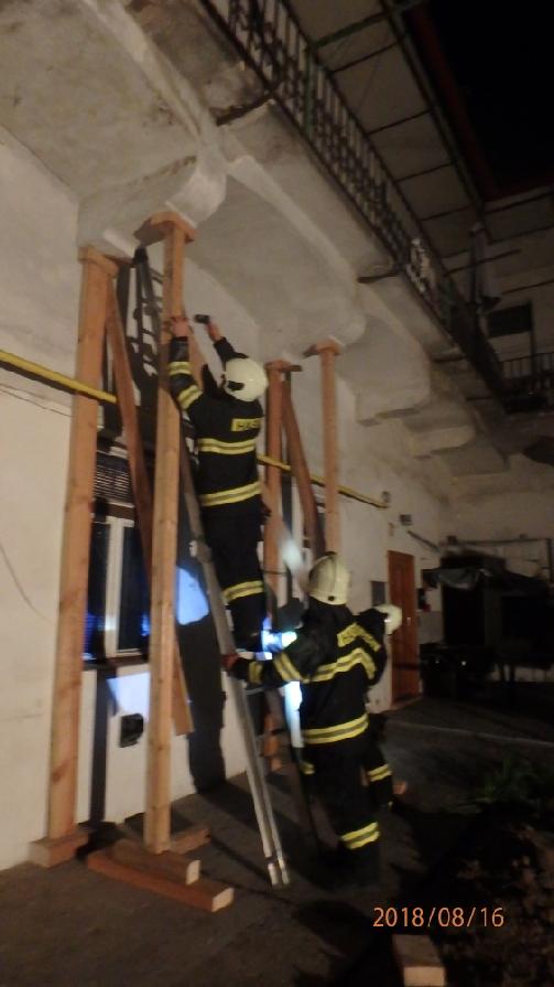 Profesionální hasiči z Jaroměře a z centrální stanice v Hradci Králové zasahovali v části Josefov v ulici Zdeňka Němečka. Na bytovém domě došlo k narušení předsazené balkónové konstrukce, tzv. pavlače. Protože hrozilo, že dojde k jejímu zřícení, bylo nutné konstrukci podepřít pomocí mechanických vzpěr a výdřevy, a to zhruba v délce deseti metrů. Skrz konstrukci vedla také plynová přípojka, proto musel být plyn před další manipulací uzavřen.