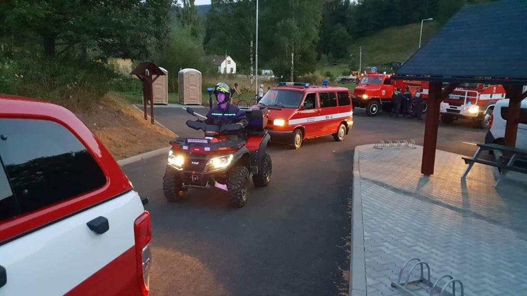 Celkem třináct jednotek požární ochrany zasahovalo u požáru lesního porostu a hrabanky u Machova, v katastru části obce Bělý nad Řeřišným. Šedobílý kouř, který stoupal z lesa, byl vidět z velké dálky. Hasiči museli nejprve průzkumem odhalit, na jakém konkrétním místě v lese hoří. Místo požáru se nacházelo ve velmi těžko přístupném terénu, kde hořela lesní hrabanka, ale také popadané stromy, a to na ploše asi 100x100 metrů.