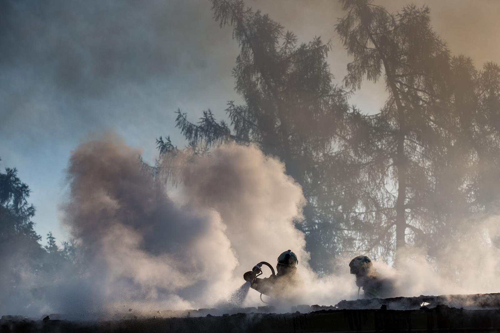 Celý zásah absolvovali hasiči v dýchací technice. Práci jim zpočátku komplikoval nejen silný kouř, ale v průběhu dne také velmi horké počasí. Zasahující hasiči se museli často střídat, neboť hrozilo jejich celkové vyčerpání a následný kolaps. Při události došlo k lehčím zranění dvou hasičů, kteří po ošetření pokračovali dále v práci. Další hasič pak skončil v péči záchranářů, a to z důvodu dehydratace a vyčerpání organismu.