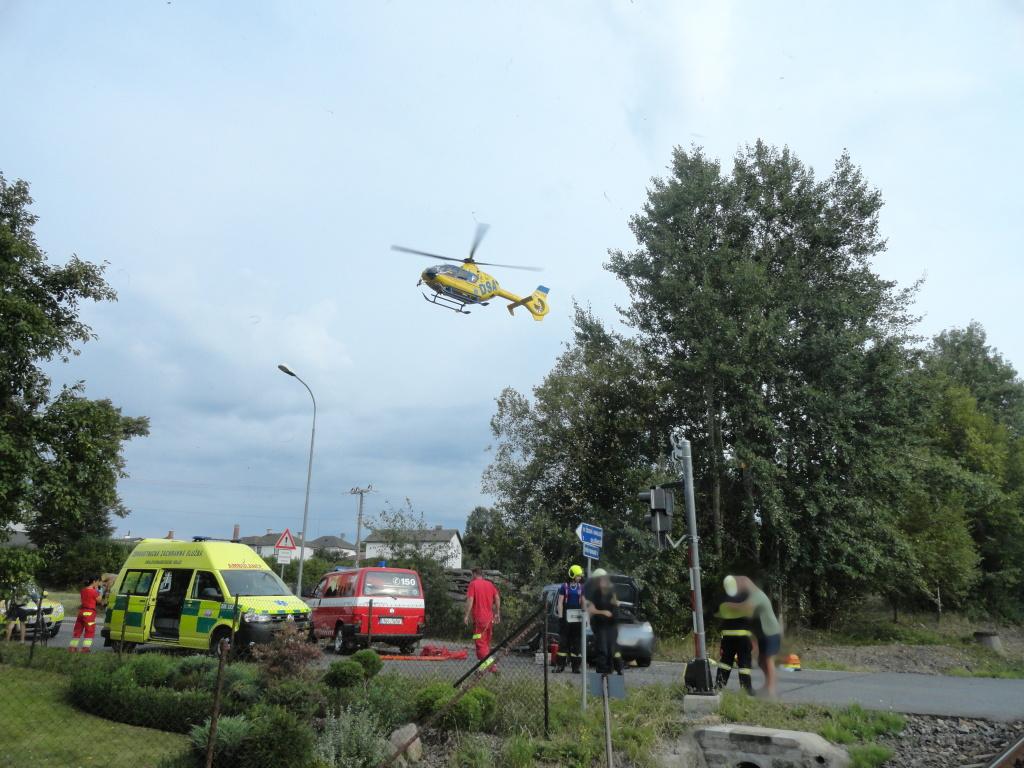 U nehody osobního vozidla a vlaku, která se stala na nechráněném železničním přejezdu v části Stolín, zasahovali profesionální hasiči z Náchoda a dobrovolná jednotka z Červeného Kostelce. V osobním vozidle došlo ke zranění dvou osob, které si do péče převzali záchranáři. Na místo mířil také vrtulník letecké záchranné služby. Ke zranění cestujících ve vlaku nedošlo. Hasiči pomohli s evakuací asi čtyřicítky osob z vlaku, které pak převáželi cisternou na nádraží do Červeného Kostelce. Místo zásahu si poté převzali drážní hasiči SŽDC.