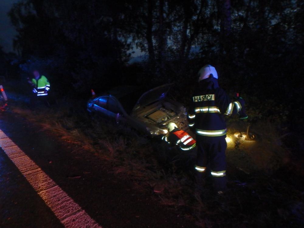 Jičínští profesionální hasiči zasahovali u dopravní nehody osobního vozidla na obchvatu Jičína. Automobil vyjel mimo komunikaci a skončil v poli. Dvě osoby se při nehodě zranily, záchranáři je převezli do zdravotnického zařízení. Hasiči místo události zajistili a předali jej policistům.