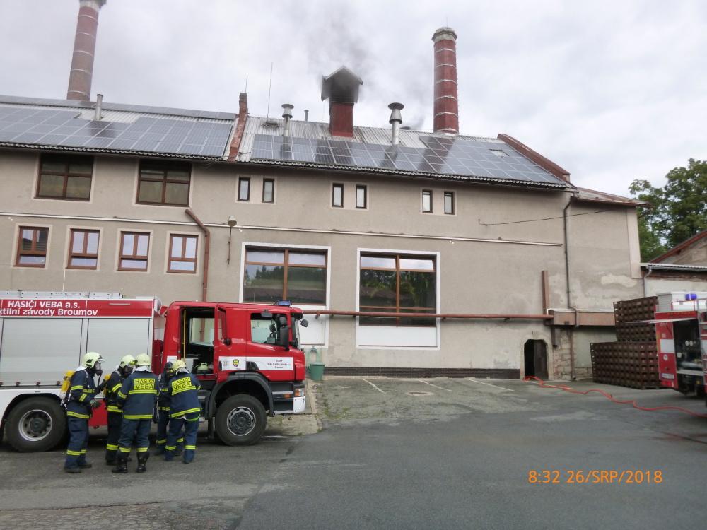 Tři jednotky hasičů vyjely k nahlášenému požáru v broumovském pivovaru. V uzavřené místnosti došlo k zahoření kompresoru. Prostory byly silně zakouřeny, ale i přesto dostali hasiči místo požáru brzy pod kontrolu. Oheň uhasili a poté začali prostory nuceně odvětrávat pomocí přetlakové ventilace. Nakonec prohlédly jednotky celý prostor kompresorovny včetně stropu pomocí termokamery, zda se v místě nenachází skrytá ohniska požáru. Prostor byl již v pořádku, a proto se mohly jednotky vrátit zpět na své stanice. Při požáru nedošlo ke zranění ani ohrožení osob.