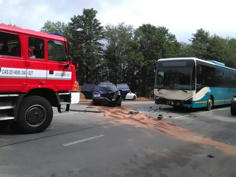 Následky dopravní nehody dvou osobních vozidel odstraňovali profesionální hasiči z Nové Paky. Při nehodě došlo ke zranění jedné osoby, kterou si převzali do své péče záchranáři. Jeden z havarovaných automobilů vyjel po nehodě mimo komunikaci a zůstal v lesním porostu. Hasiči provedli na havarovaných vozech protipožární