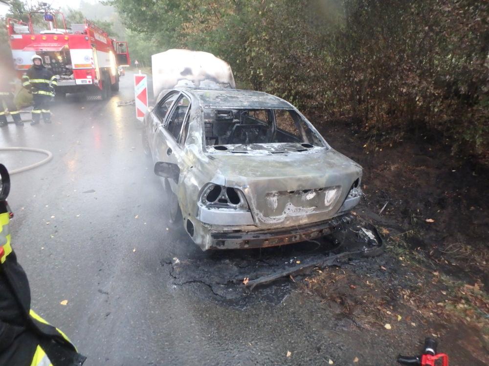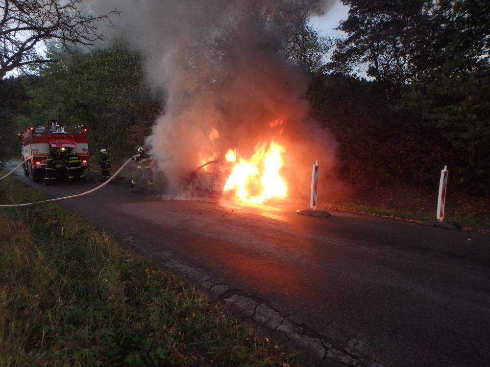 Profesionální hasiči z Rychnova nad Kněžnou a dobrovolná jednotka z Doudleb nad Orlicí likvidovali požár osobního vozidla. Požár byl již rozvinut v plném rozsahu, hasiči jej zasáhli pomocí dvou C proudů. Škoda byla předběžně vyčíslena na 4 tisíce korun.