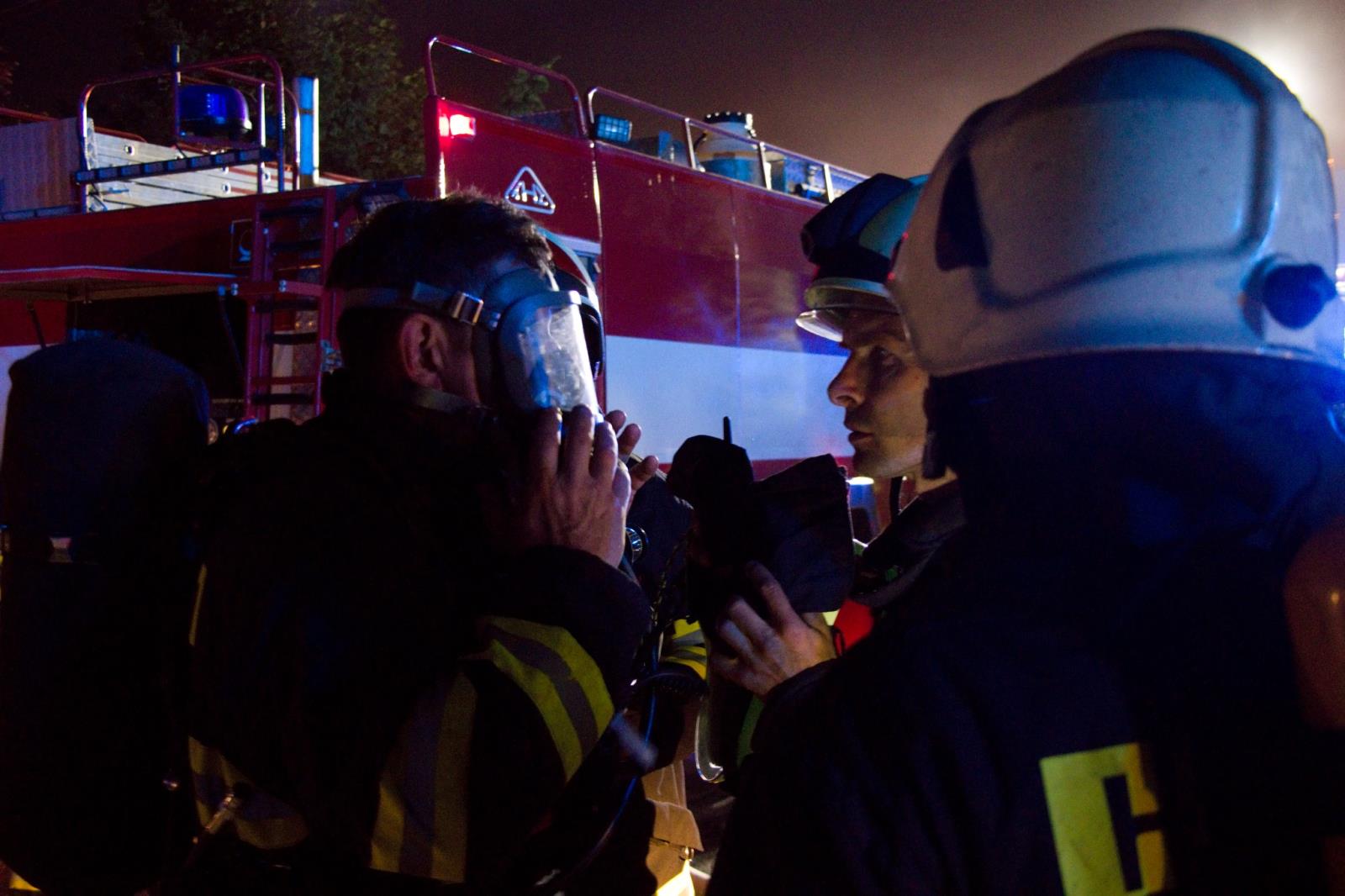 Hasiči zahájili hned po svém příjezdu průzkum zasaženého objektu. Kvůli tomu, že se v budově nacházely různé chemikálie a při požáru hořelo větší množství různých materiálů, musel probíhat zásah v dýchací technice. I z toho důvodu byl na místo zásahu povolán protiplynový kontejner, kde mají hasiči v zásobě dostatek dýchací techniky, kterou si průběžně po dobu zásahu vyměňovali.