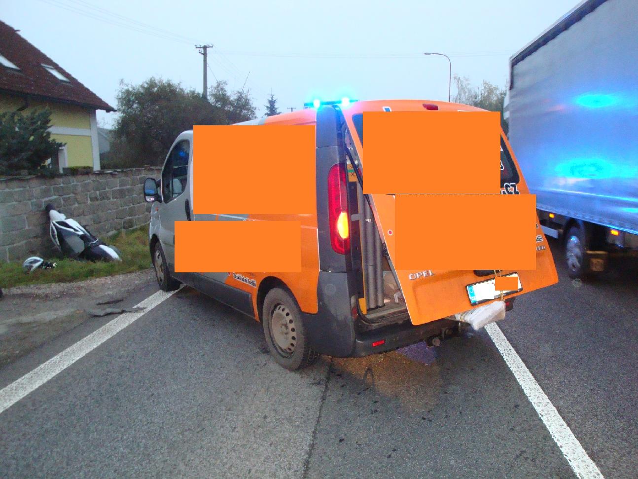 Jednotka byla přivolána o hodinu později (ohlášeno 7:27) do Svinišťan, tentokráte k nehodě dodávky a skútru. Zdravotnická záchranná služba prohlédla řidiče skútru. Ke zranění osob nedošlo.