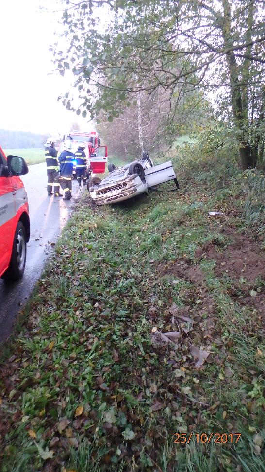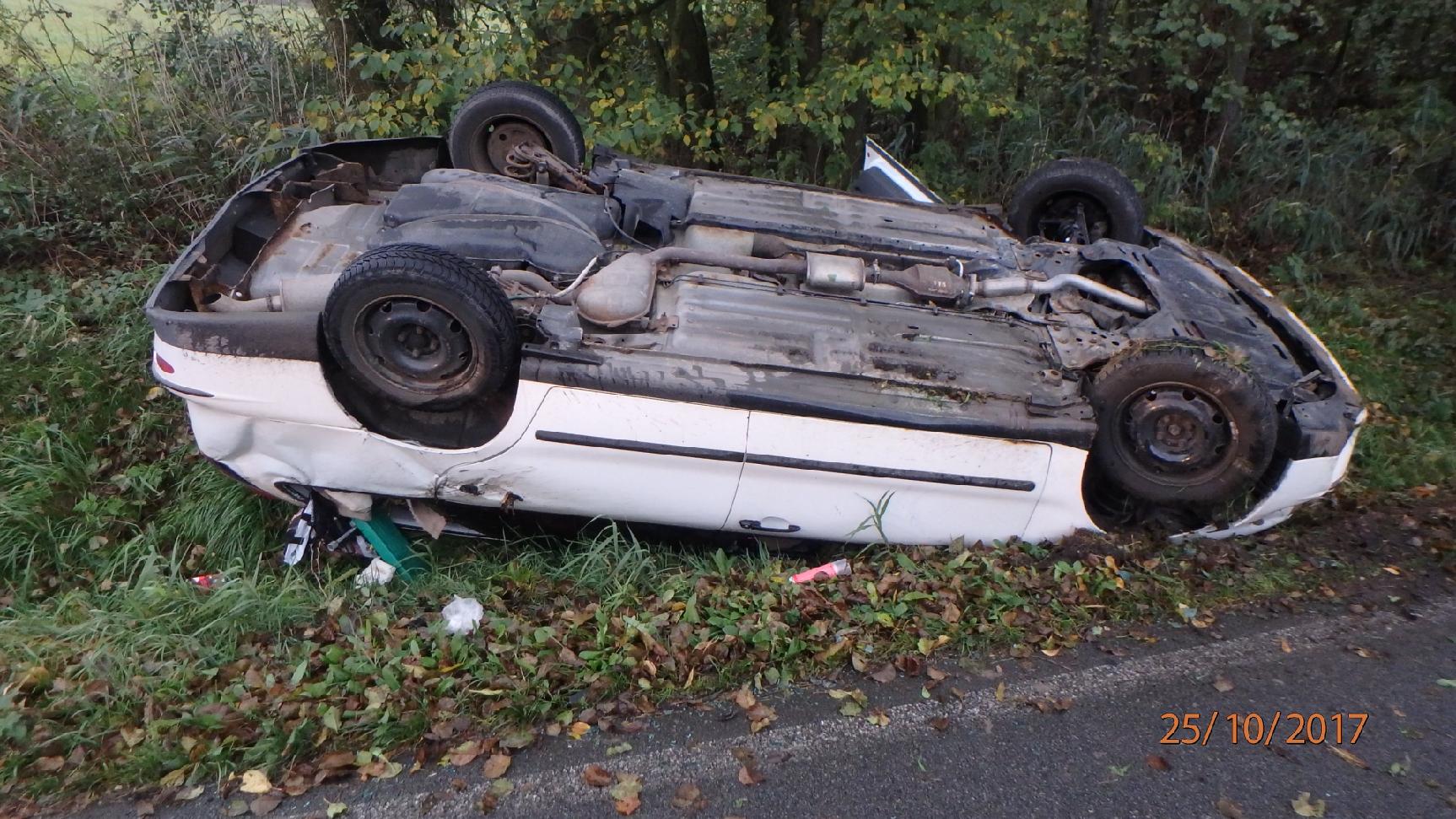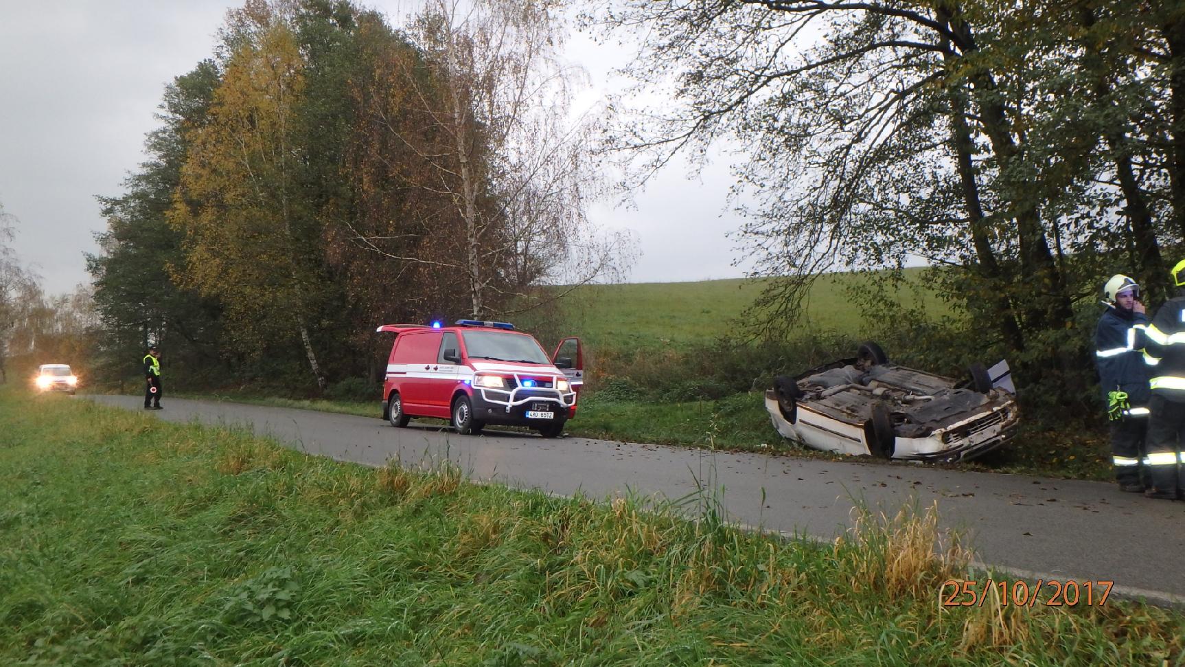 Rychnovští profesionální hasiči spolu s kosteleckými dobrovolnými hasiči byli v 16:18 přivoláni k osobnímu automobilu, který skončil převrácený na střeše v příkopu. Nehoda se stal na silnici mezi Kostelcem nad Orlicí a Tutleky. Jednotky otočily vozidlo zpět na kola a pomohly s jeho naložením na odtah. Řidič vyvázl bez zranění.