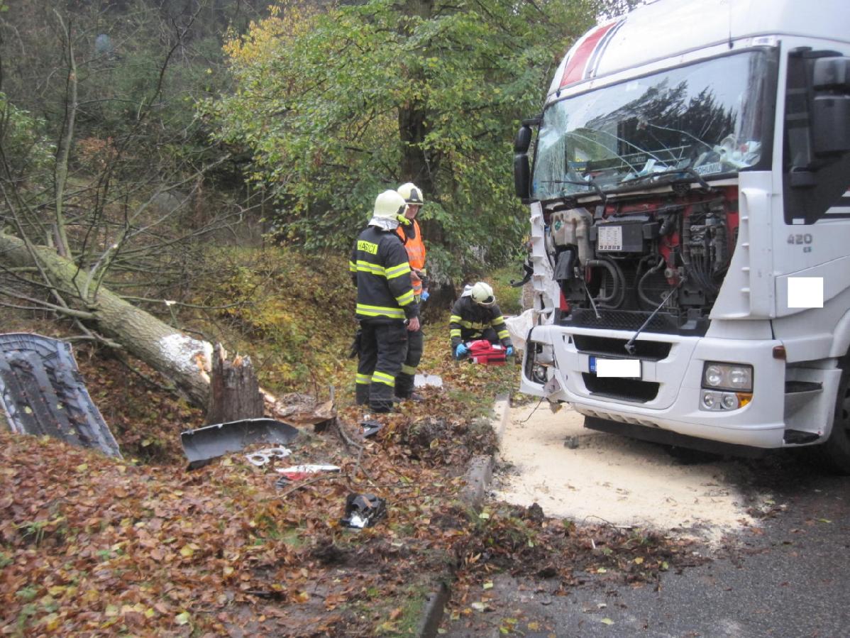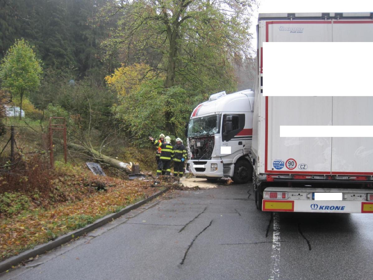 Profesionální hasiči z Trutnova a dobrovolní hasiči z Úpice byli v 11:14 přivoláni do Batňovic, kde došlo k nárazu kamionu do stromu. Řidič utrpěl lehčí zranění a byl na místě ošetřen. Vozidlo zablokovalo celou šíři vozovky. Pro osobní automobily byla zřízena objízdná trasa. Vozovka byla na přibližně tři hodiny zcela uzavřena.