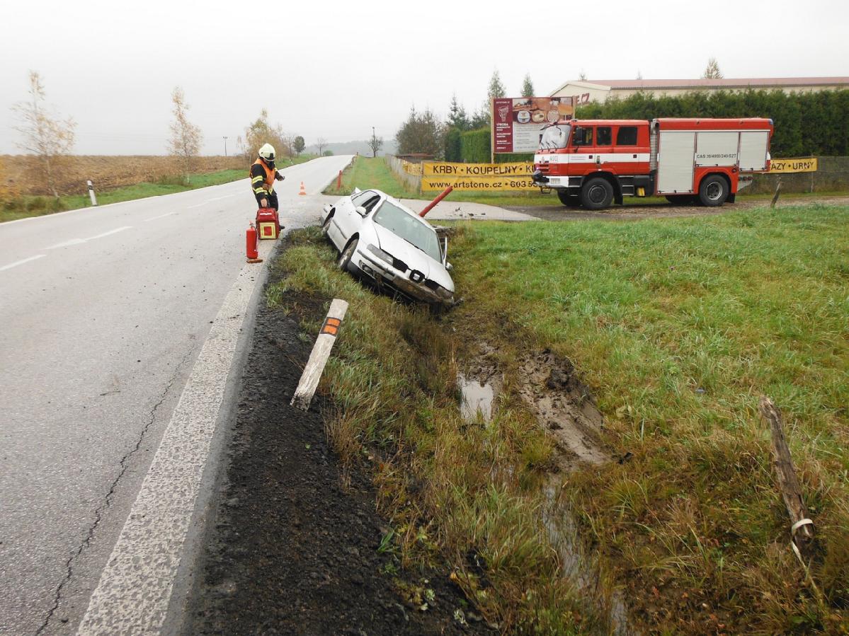 Profesionální hasiči z Hořic byli ve 12:17 přivoláni k osobnímu vozidlu, se kterým řidička vyjela mimo vozovku do příkopu. Nehoda se stala v Jahodné. Řidička utrpěla tržnou ránu v obličeji a byla odvezena zdravotnickou záchrannou službou na ošetření do nemocnice. Jednotka provedla na voze protipožární opatření.