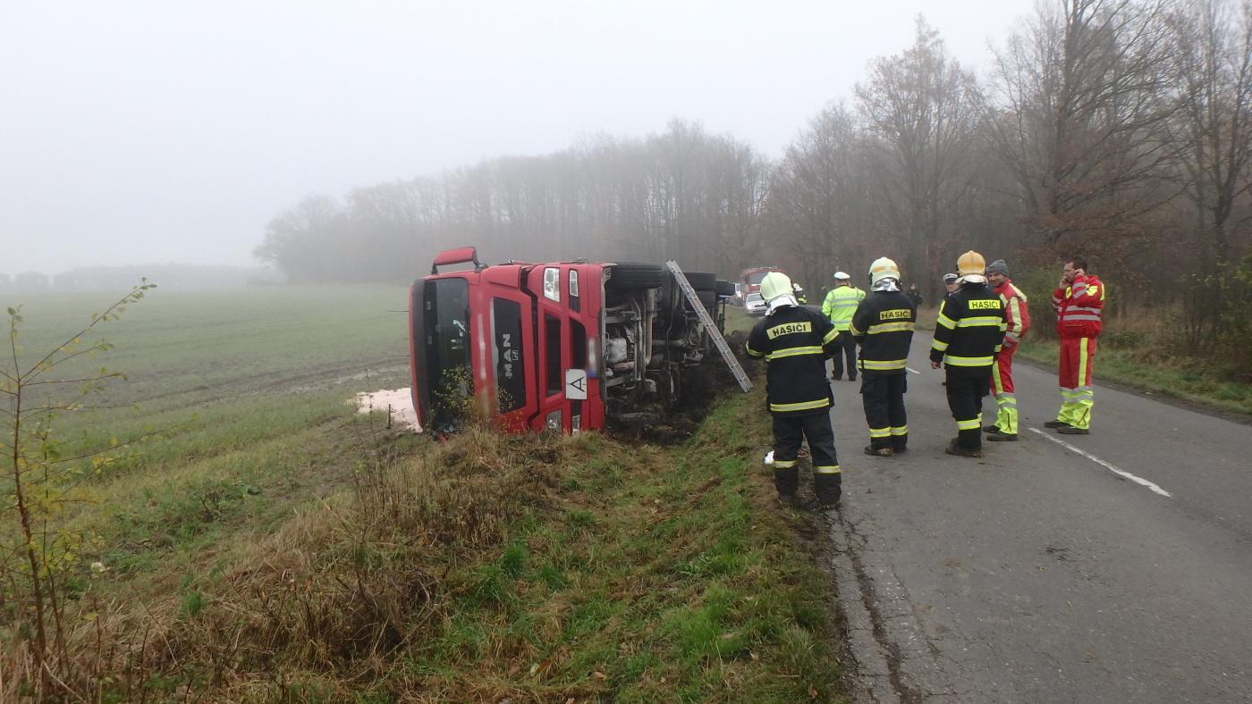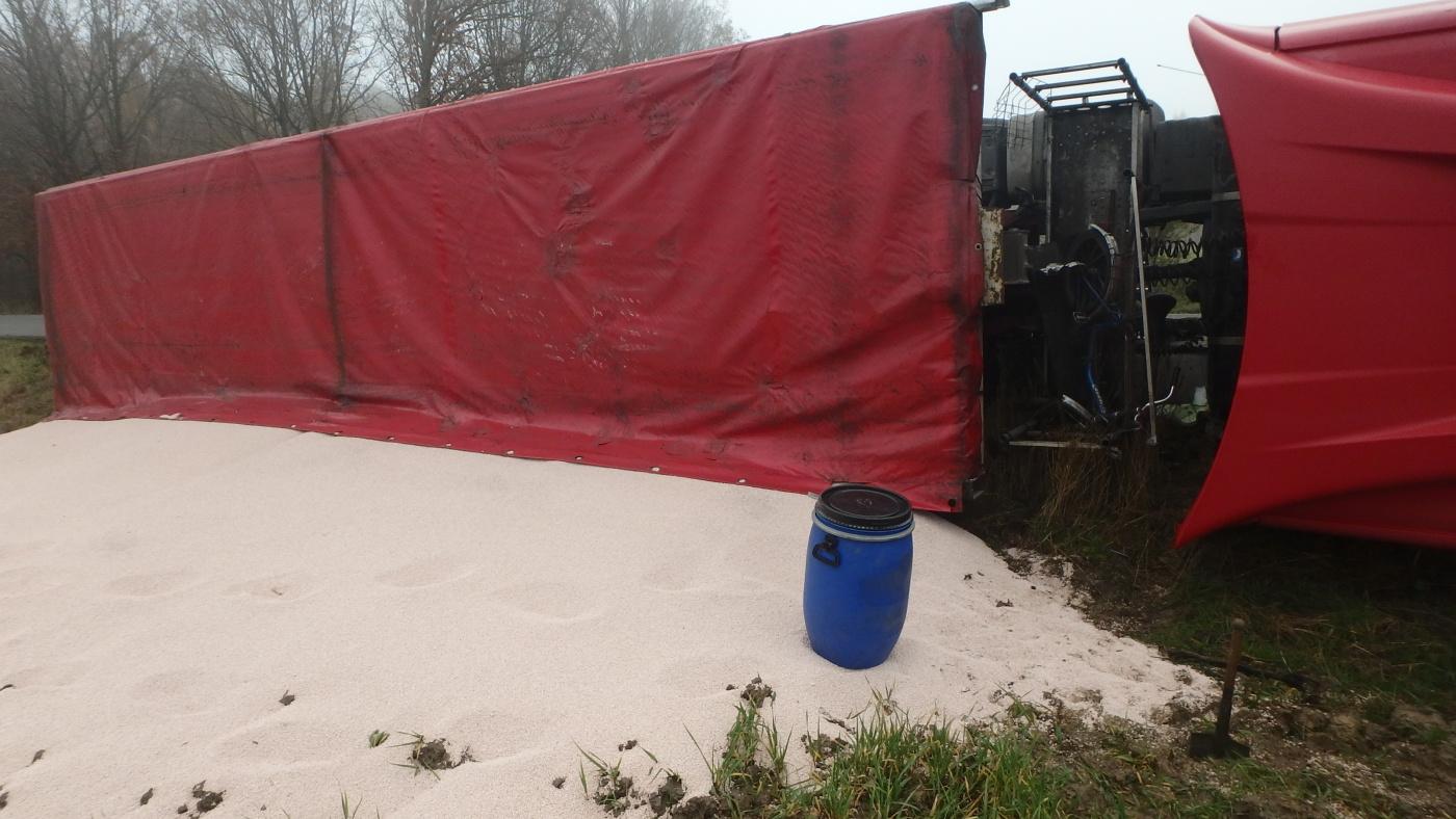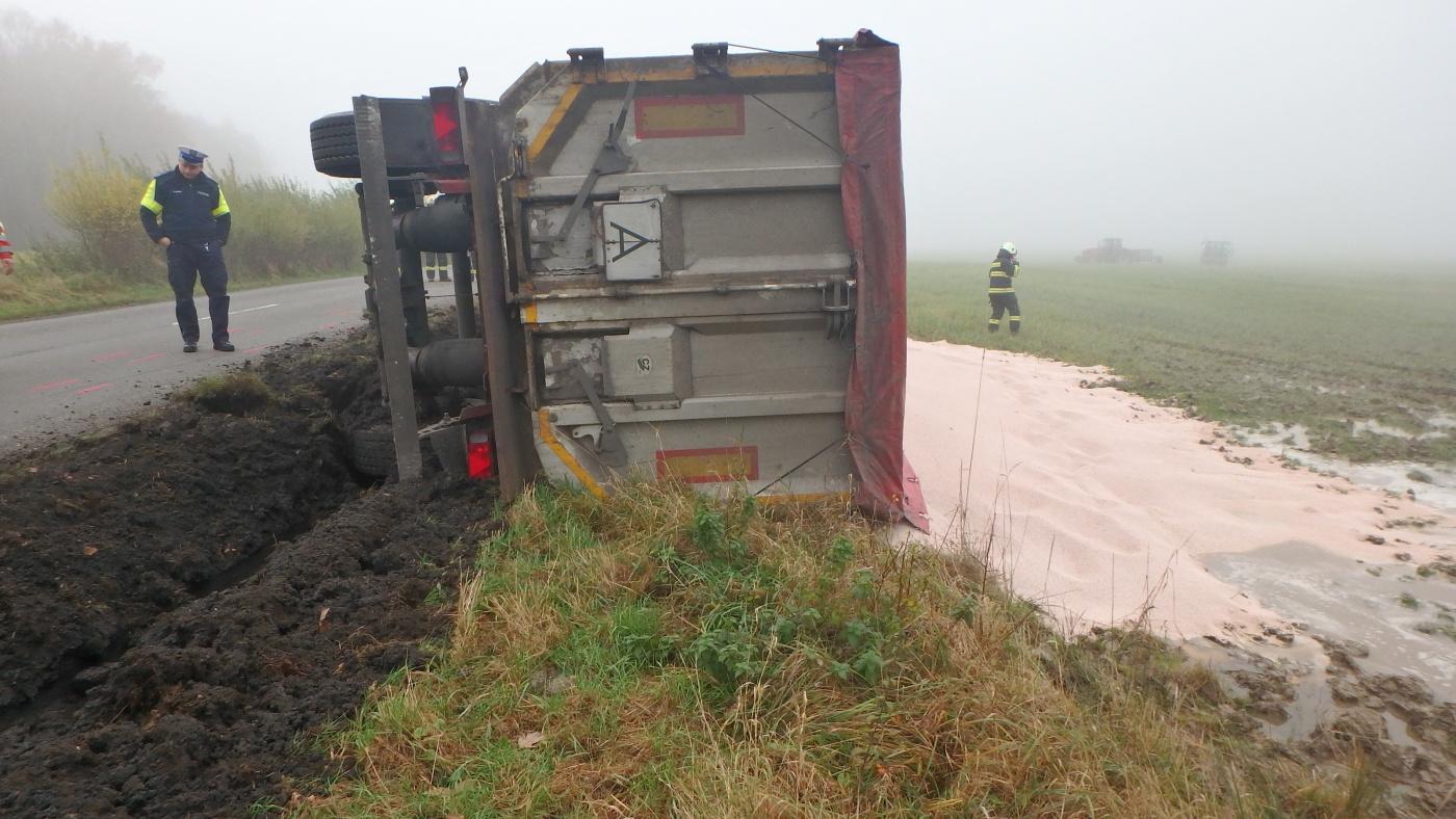 Profesionální hasiči z Jaroměře a dobrovolní hasiči z Nového Města nad Metují zasahovali u převráceného kamionu na bok. Řidič skončil v péči ZZS. Z kamionu uniklo malé množství provozních kapalin, které hasiči zasypali sorbentem. Náklad kamionu se vysypal do pole. Jednalo se o více než 22 tun dusičnanu amonného, který se využívá jako hnojivo. Nejednalo se o nebezpečnou látku.