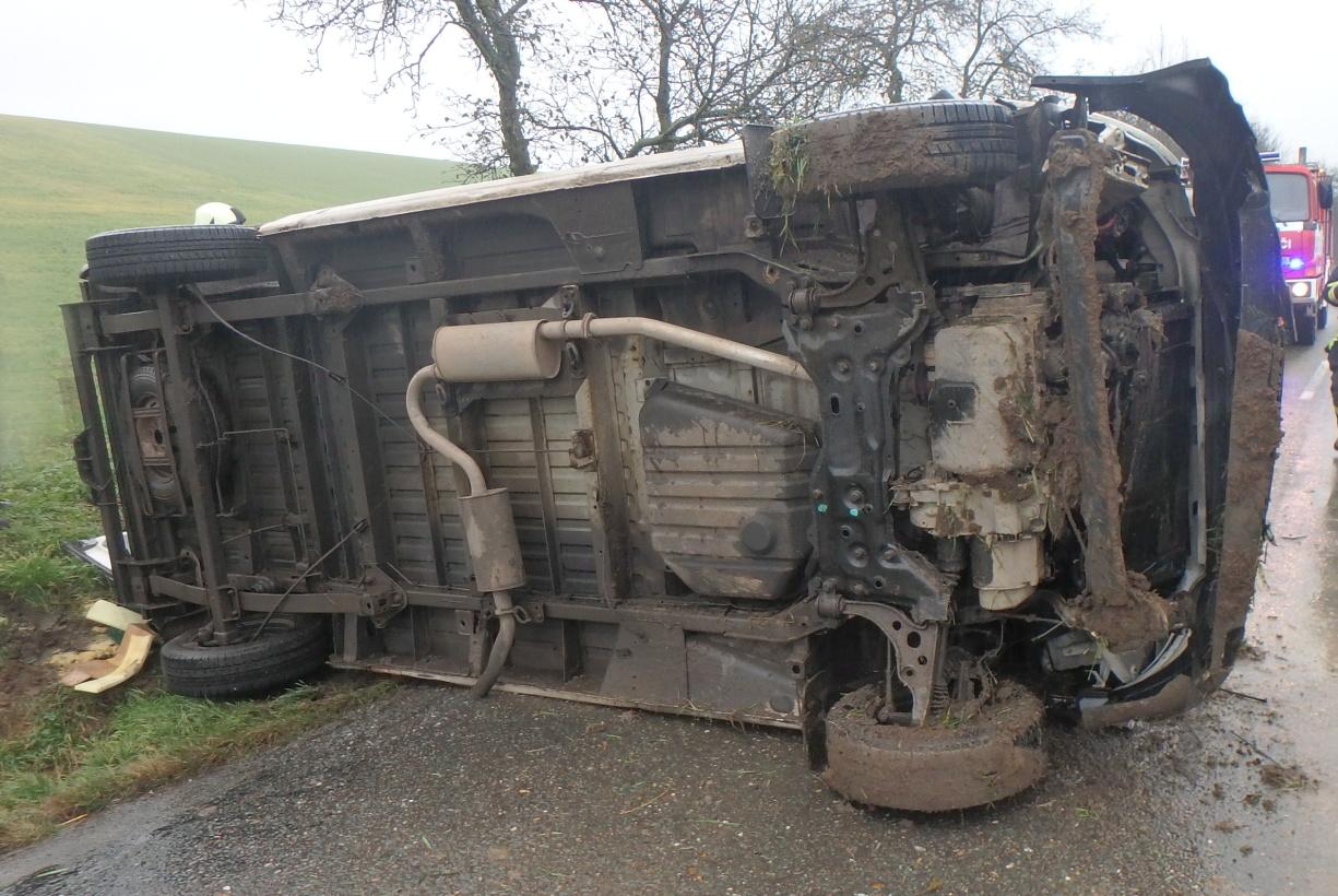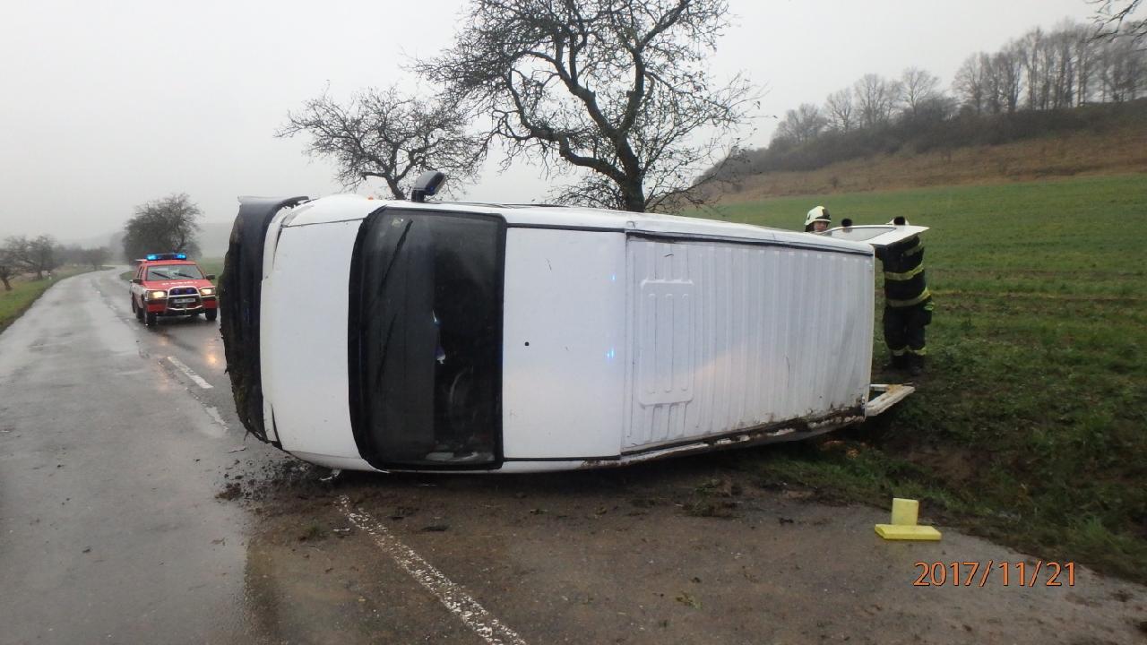 U převrácené dodávky na bok zasahovali profesionální hasiči z Jaroměře. Událost se stala v části Rtyně. Nehoda se obešla bez zranění.