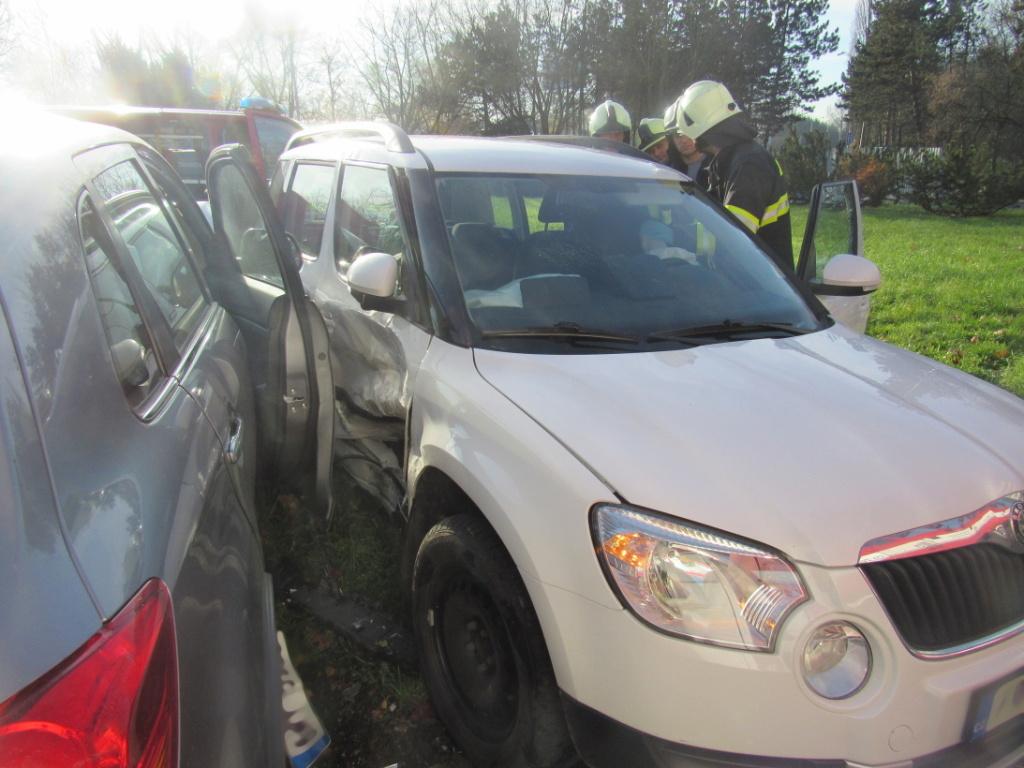 U dopravní nehody dvou osobních vozidel zasahovali rychnovští profesionální hasiči. Jednu zraněnou osobu museli hasiči vyprostit, záchranáři si převzali do péče celkem dvě osoby. Hasiči provedli na vozidlech protipožární opatření a uniklé kapaliny zasypali sorbentem.