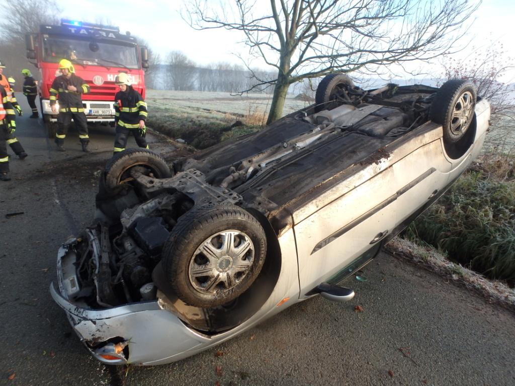 Profesionální hasiči z Nové Paky a z Hořic v Podkrkonoší byli povoláni k dopravní nehodě jednoho osobního vozidla. Automobil skončil po nehodě mimo vozovku a byl převrácený na střechu. Nehoda se obešla bez zranění. Hasiči provedli na vozidle protipožární opatření a odpojili akumulátory.