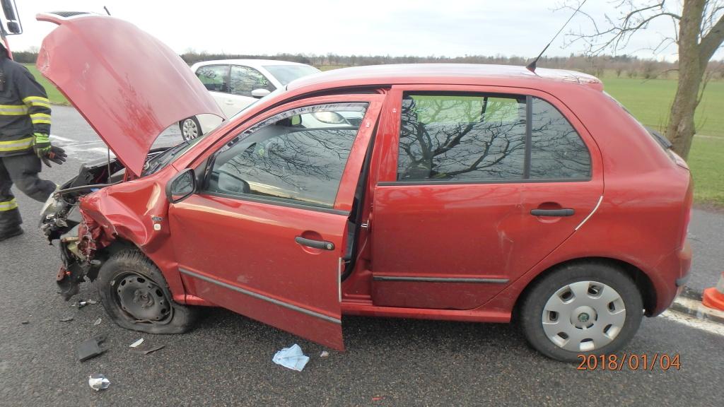 Profesionální Hasiči z Jaroměře zasahovali u dopravní nehody dvou osobních vozidel nedaleko Smiřic. Jedno z vozidel zůstalo na komunikaci, druhé skončilo po srážce mimo vozovku. Posádky obou automobilů byly již v době příjezdu jednotek mimo vozidla. Dvě zraněné osoby převezli záchranáři do zdravotnického zařízení. Místo události si převzali policisté.