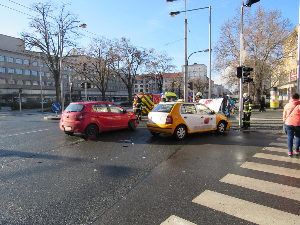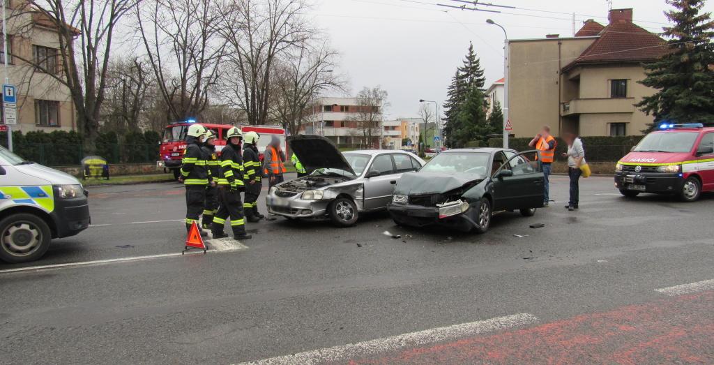Hradečtí profesionální hasiči z centrální stanice U Přívozu zasahovali u dopravní nehody dvou osobních vozidel na Ulrichově náměstí. Při dopravní nehodě byla jedna osoba zraněna, do péče si ji převzali záchranáři.