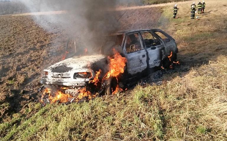 Profesionální hasiči ze stanice Hradec Králové – Pražská a dobrovolné jednotky z Račic nad Trotinou a Hořiněvsi vyjeli k požáru osobního automobilu. Vzhledem k terénu se nemohla na místo dostat těžká technika a hasiči museli k hořícímu vozidlu dojít pěšky. Vůz se nacházel v poslední fázi požáru, proto jej nechali hasiči kontrolovaně dohořet. Příčinou požáru byla jízda s technicky nezpůsobilým vozidlem. Událost byla vyhodnocena jako beze škody.