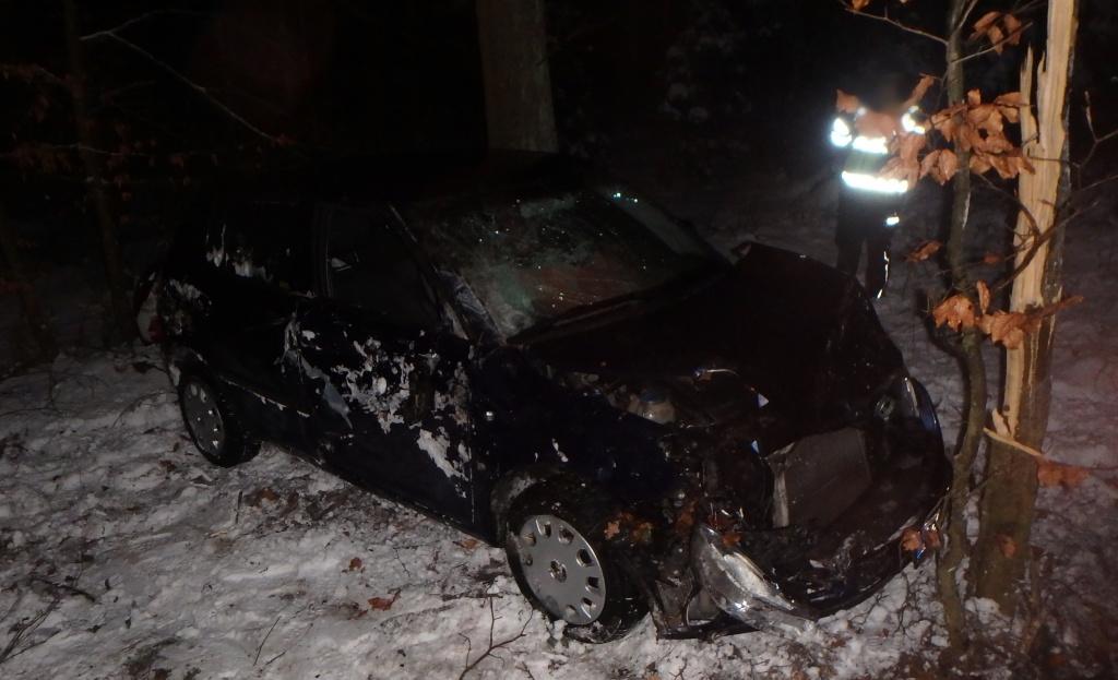 Profesionální jednotka ze Dvora Králové nad Labem a dobrovolní hasiči z Hajnic zasahovali u dopravní nehody osobního automobilu. Ten narazil do stromu. Došlo ke zranění dvou osob, které si převzali záchranáři. Jednotka místo události zajistila, provedla protipožární opatření a předala vše policistům.