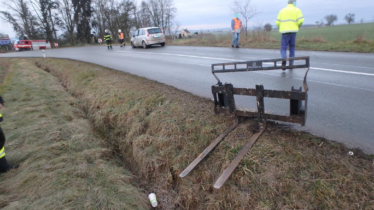 Profesionální hasiči z Nového Bydžova byli ráno přivoláni k dopravní nehodě, která se stala u Zadražan. Z jedoucího nákladního vozidla spadl na další vozidlo paletizační vozík. Nehoda se obešla bez zranění osob. Jednotka provedla na osobním automobilu protipožární opatření.