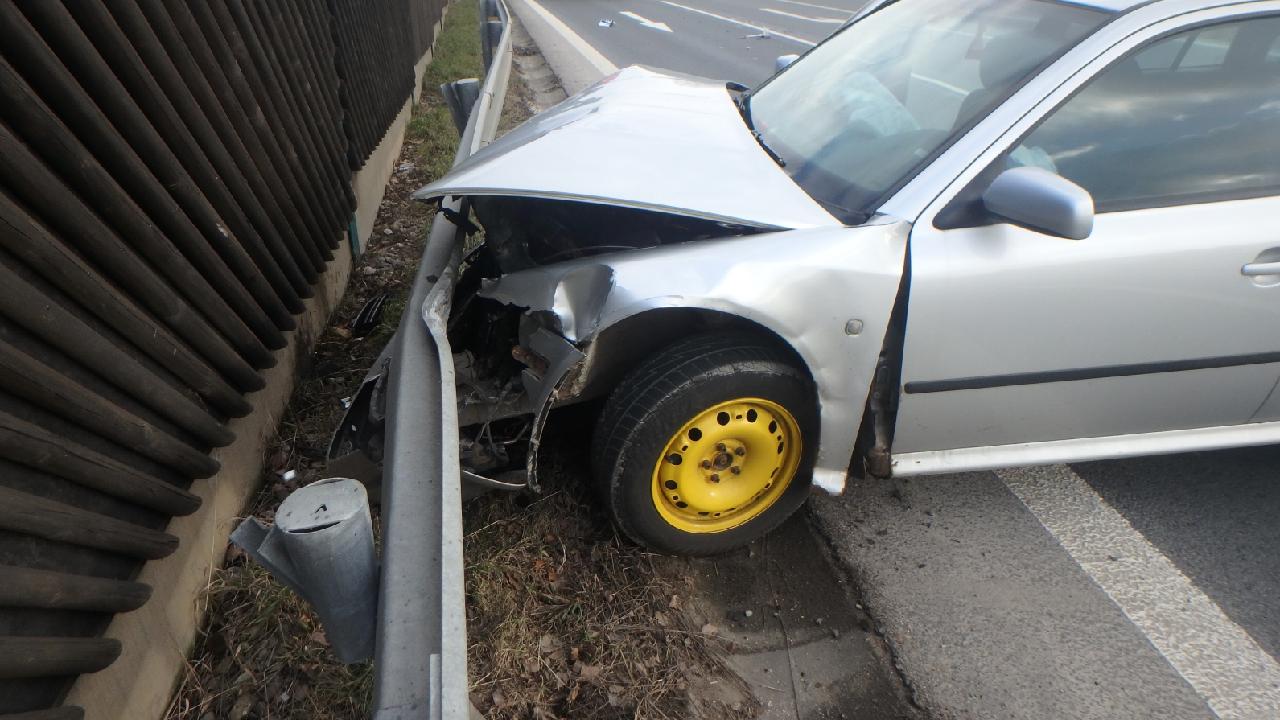 Profesionální hasiči z královéhradecké centrální stanice vyjeli v nočních hodinách na Pražskou třídu, kde došlo k havárii osobního vozidla. Řidič narazil do zábradlí, které poškodil. Z vozu unikla pouze voda do ostřikovačů. Ke zranění osob nedošlo.