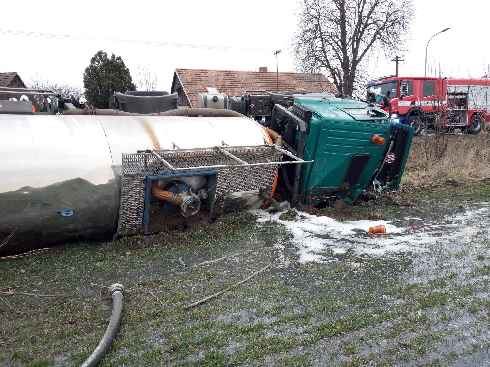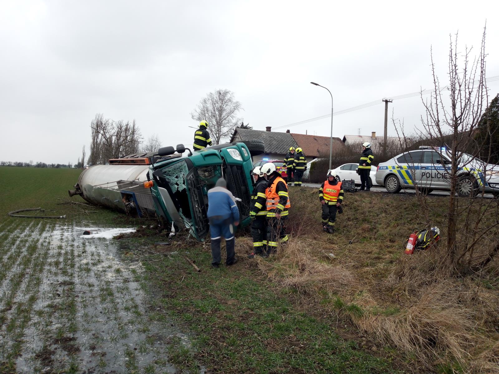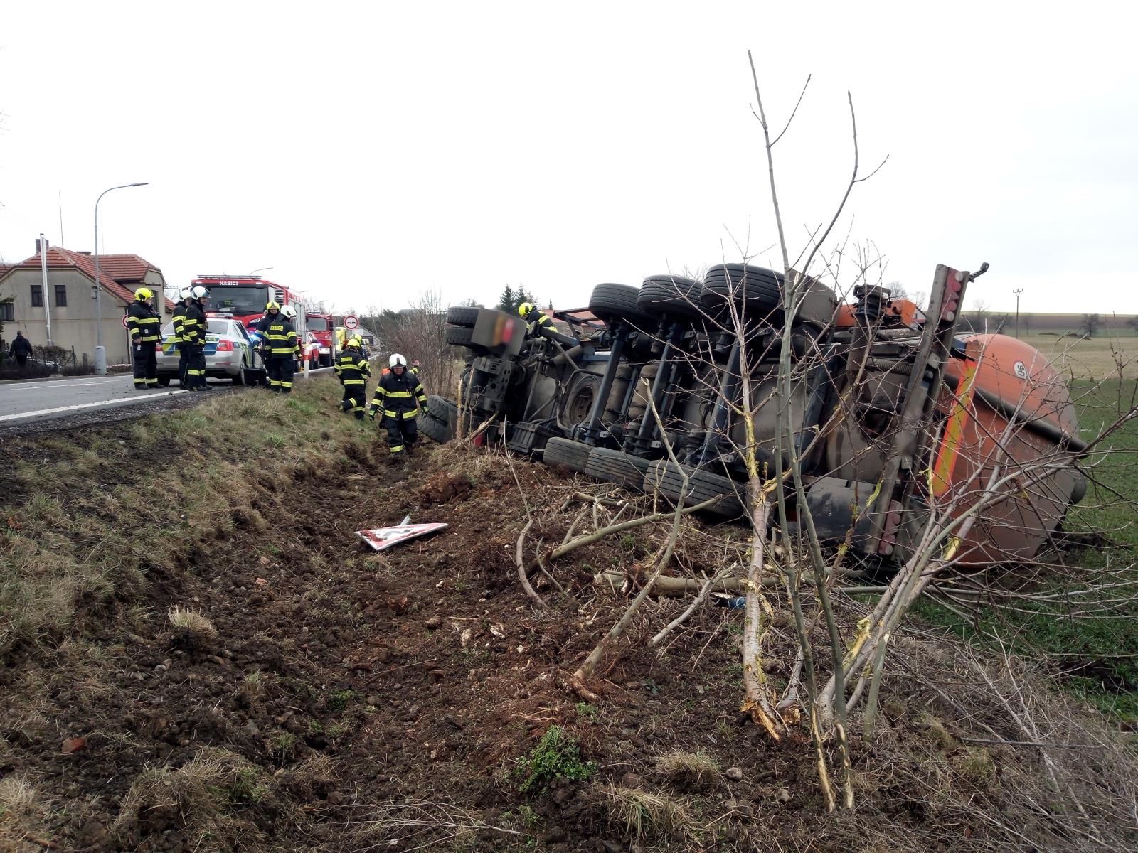 Převrácená cisterna se skládkovou vodou