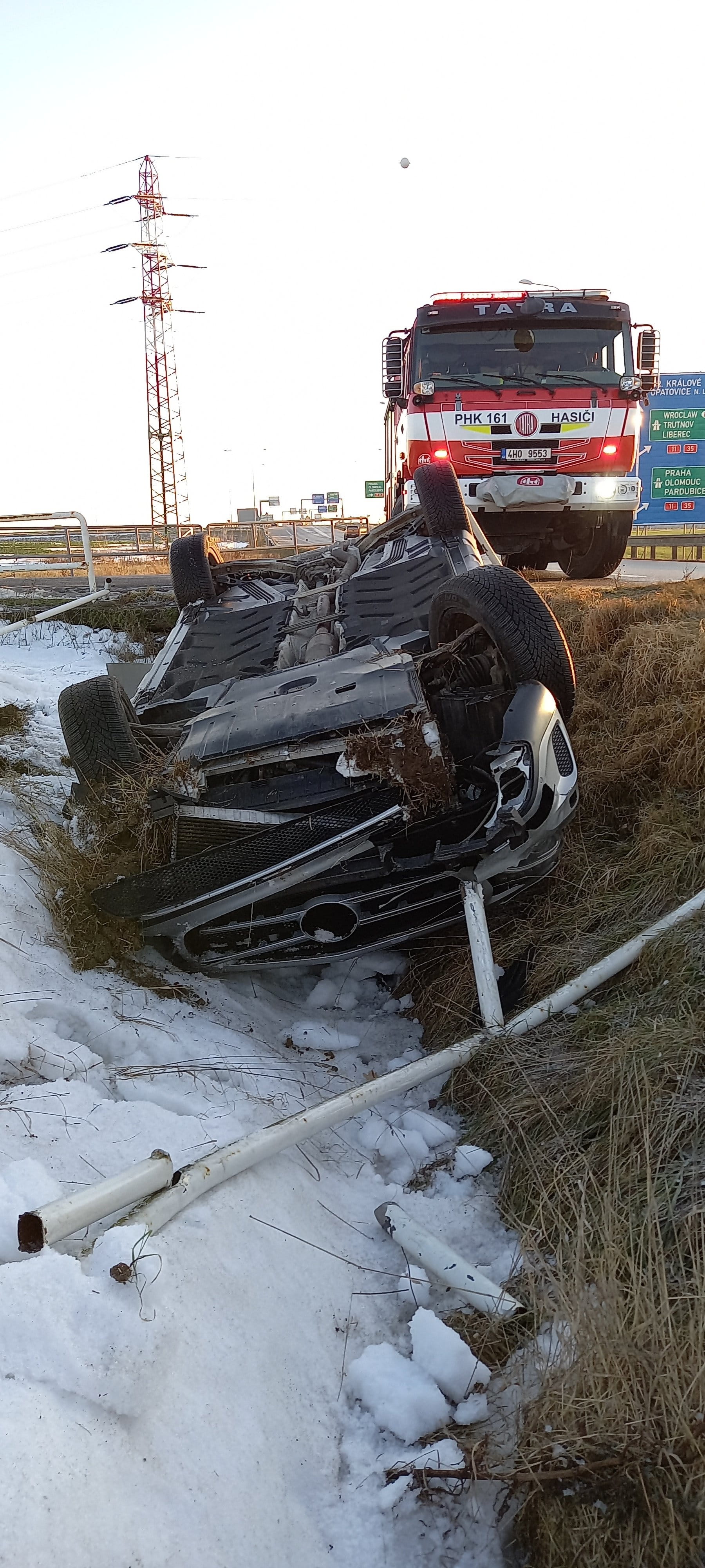 Převrácená vozidla zaměstnala hasiče a upozornila na rizika na silnicích
