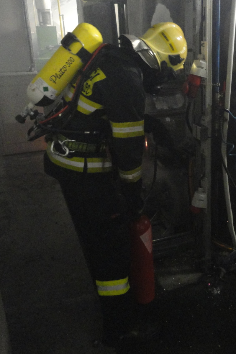 Dvě jednotky hasičů byly vyslány do části Stolín, kde došlo v jednom z místních podniků k požáru stroje v rámci výrobní linky. Prostory byly silně zadýmené, zásah prováděli hasiči v dýchací technice. Likvidace požáru byla ohlášena velitelem zásahu kolem 03:30 hod. Jeden ze zaměstnanců firmy byl předán do péče ZZS, nadýchal se zplodin hoření.