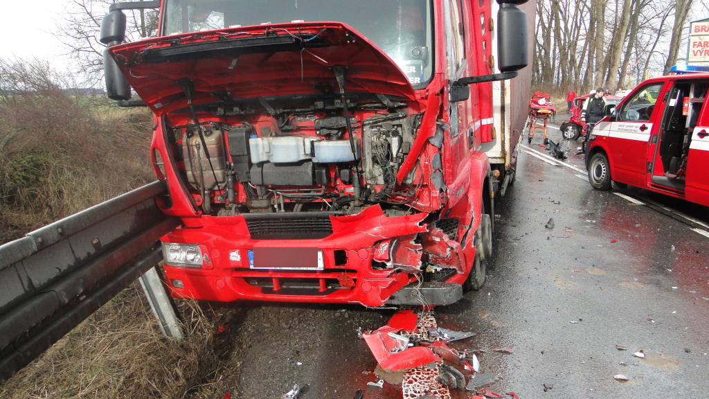 Při tragické srážce dvou osobních a jednoho nákladního vozidla zemřela jedna osoba