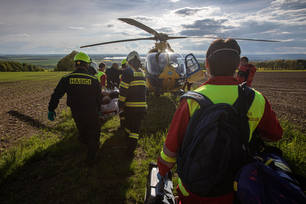 Pro zraněného motorkáře letěl vrtulník LZS