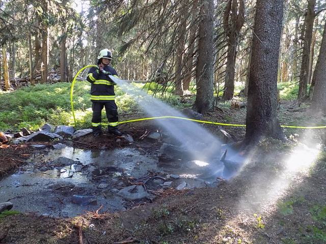 V blízkosti rybníku Biřička v části Nový Hradec Králové uhasila jednotka z centrální stanice požár lesní hrabanky na malé ploše.